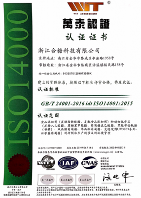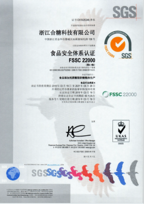 公司被評為“國家高新技術(shù)企業(yè)”,并有多個產(chǎn)品獲得“國內(nèi)發(fā)明專利”,通過了FSSC22000食品安全體系認證,ISO14001環(huán)境管理體系,MUI HALAL認證,SKS KOSHER認證,ISO9001質(zhì)量管理體系和ISO22000食品安全管理體系認證,并有多個產(chǎn)品通過了“歐洲REACH法規(guī)”注冊和“韓國REACH法規(guī)” 預注冊。